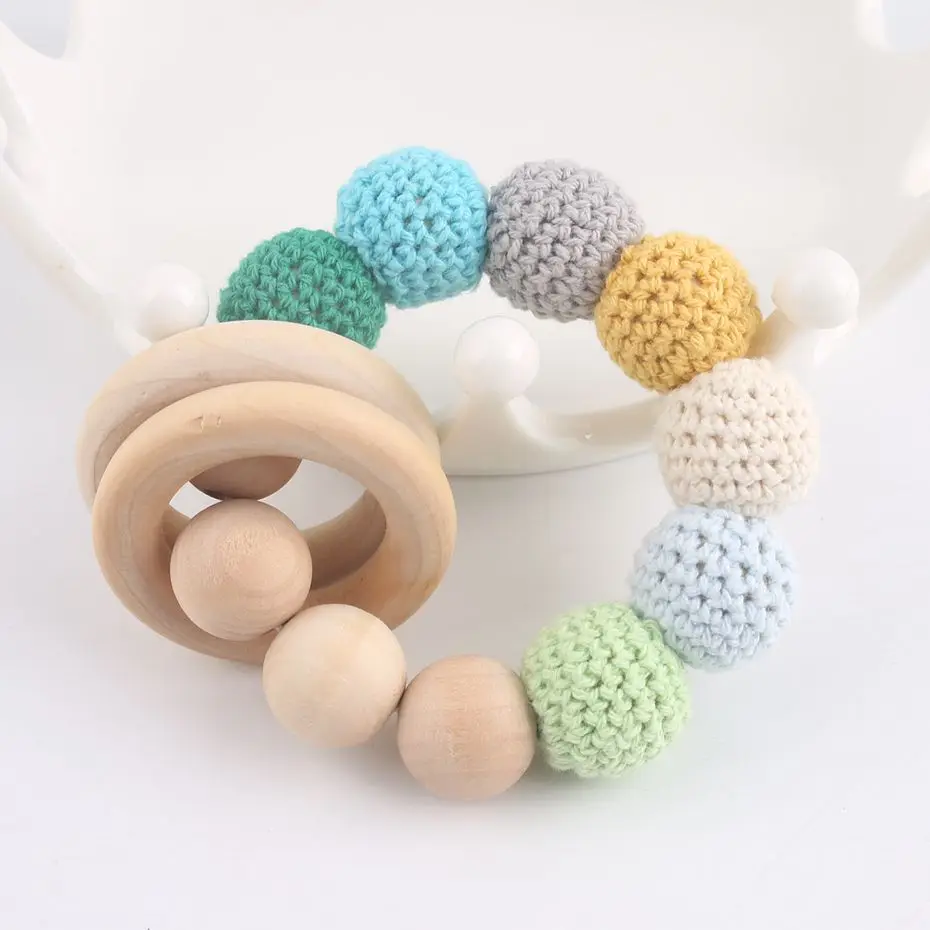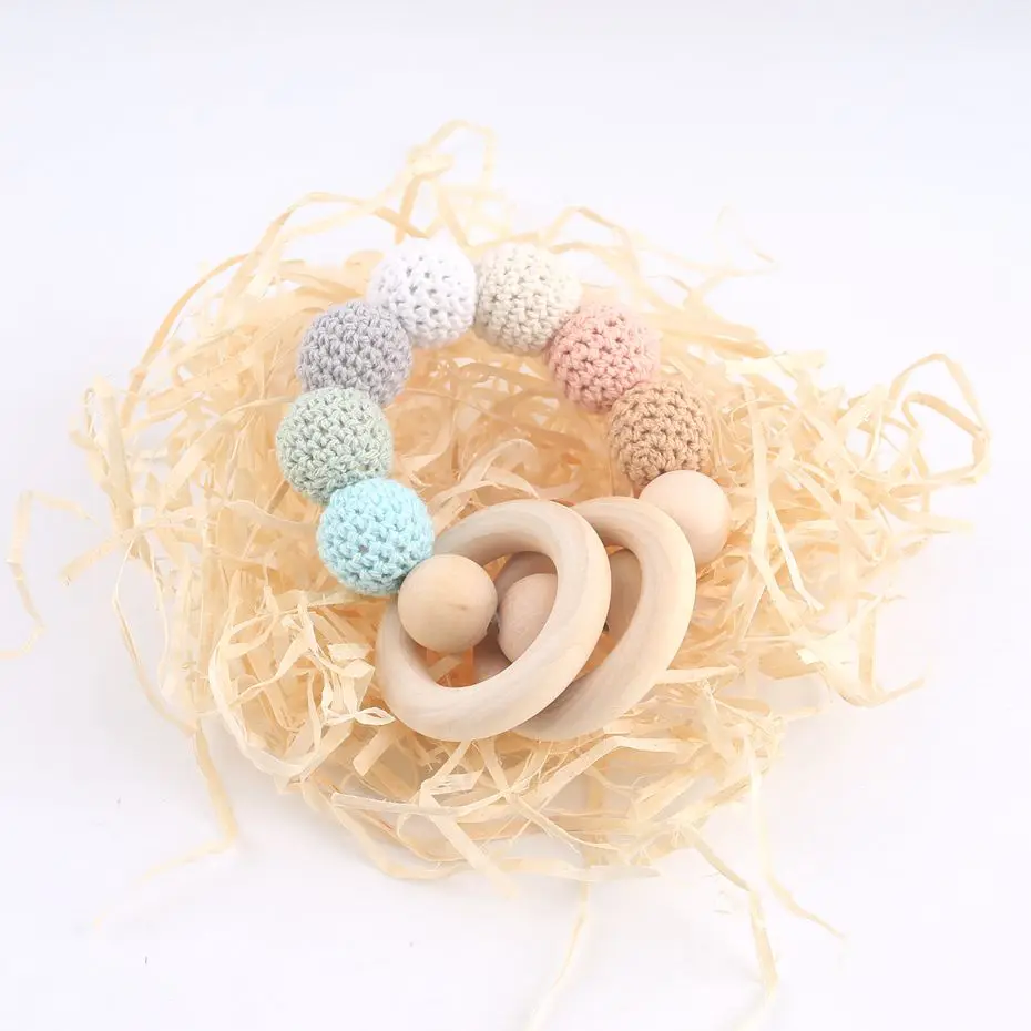 prefix] Baby Bracelet Food Grade Materials Wooden Teether Crochet Bead DIY Crafts Baby Gifts Wood Ring Baby